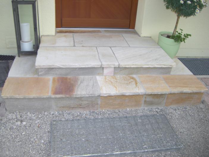 Blockstufen sind massive Naturstein-Stufen aus einem Stück. Diese eleganten und farbenfrohen Blockstufen werden häufig bei Außentreppen, aber auch bei innenliegenden Treppen eingesetzt. Durch die Kopf- an Kopf-Verlegetechnik lassen sich bei Bedarf beliebig breite Treppensysteme errichten.